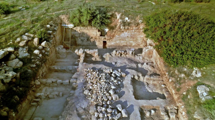 The elaborate 2,000-year-old Second Temple Period family burial cave, known as the Salome Cave, in the Lachish Forest in the Judean lowlands. (Emil Aladjem/Israel Antiquities Authority)
