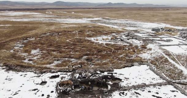 Top image: Overview of the site Tunnug 1, one of the earliest and largest burial mounds in the Eurasian steppes. Source: Trevor Wallace/Antiquity Publications Ltd