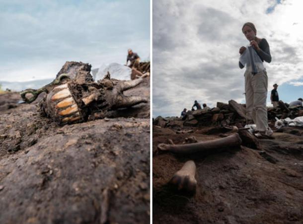 In total bones from 18 horses and one human were uncovered, and it is believed all were sacrificial victims sent to the afterlife to accompany the elite person buried in the depths of the mound.