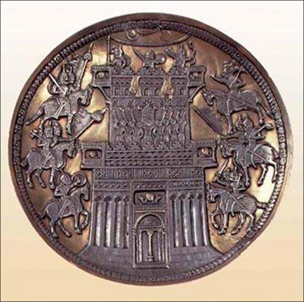 Silver Sassanian dish found on river Synya, dated back 4 - 5 centuries AD (top). Nildin dish, made in Middle Asia in 8 - early 9 centuries AD (bottom). Pictures: Arkady Baulo