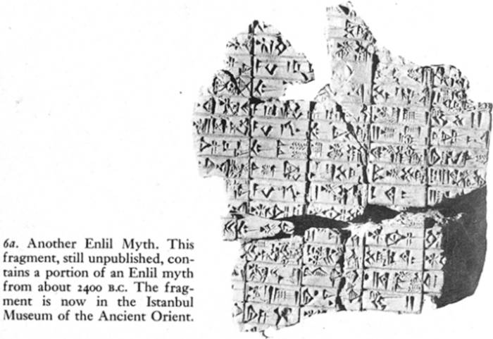 Top image: Photo of the Sumerian tablet and caption reproduced from Kramer. Source: Kramer 1956.