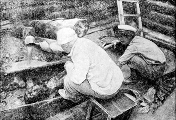 Inside the vast mound was a wooden burial chamber covered with logs. In the large sarcophagus lay the two bodies, on which are intriguing tattoos. Soviet archeologist Sergey Rudenko - who led the excavation - wrote after his discovery: 'Both the man and woman were of Caucasoid type.’