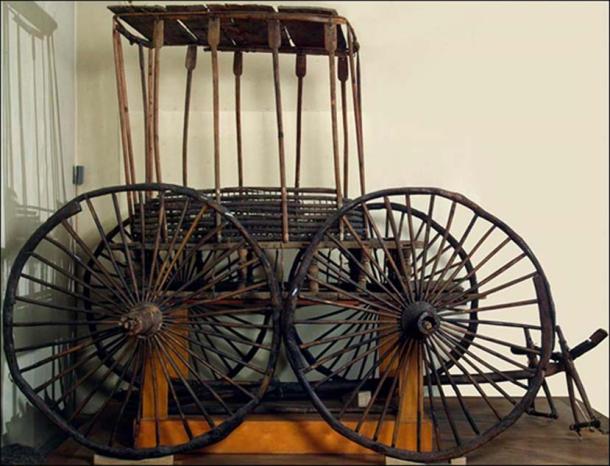 Another precious find was a disassembled wooden chariot with large wheels, presumably used in the funeral rite.