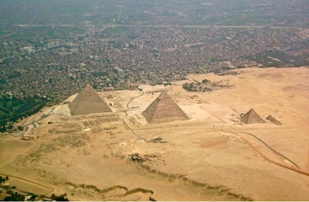 The Giza-pyramids and Giza Necropolis, Egypt, seen from above. Photo taken on 12 December 2008. (Robster1983/CC0)