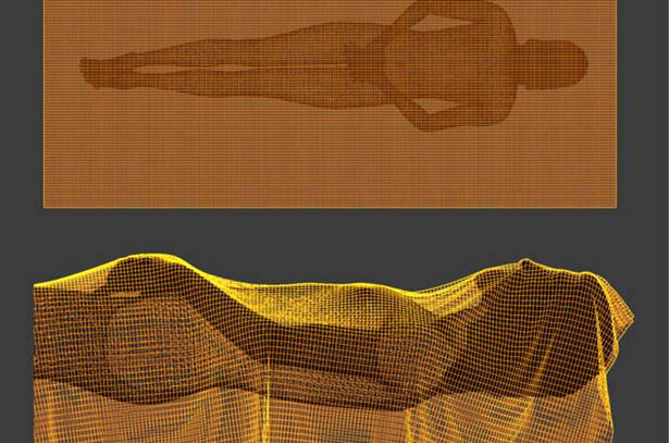 Digital simulation showing fabric positioned over human body model. (Moraes, 2025/Archaeometry)