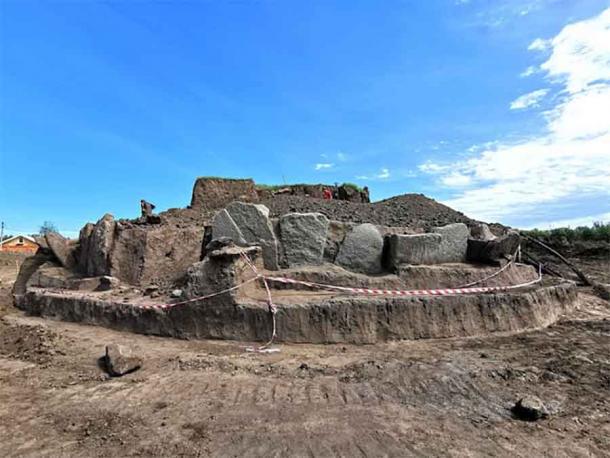 The stone circle discovered within the Ukrainian burial mound. (Archdnipro)