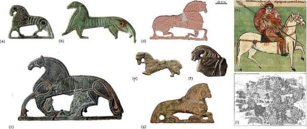 Precursors and parallels for the ‘riderless steed’ motif found on Viking pendants and figurines at Ribe. (Pieterjan Deckers, Sarah Croix & SØren M Sindbæk/Medieval Archaeology)