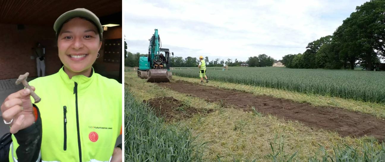 Top image: Left, Archaeologist Charlotte Finnebråten shows one of the large rivets from the Viking ship at Jarlsberg. Right, Site of Viking ship burial at Jarlsberg Manor, Norway. Source: Museum of Cultural History / University of Oslo