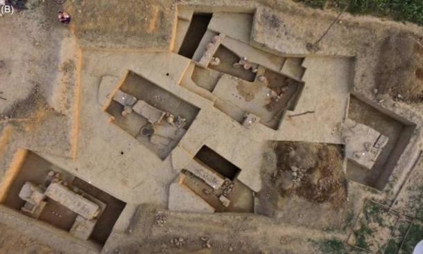 Aerial view of the excavation of the tombs where the chariots were found. (Sharma, S et al. 2024/Archaeological Survey of India/Radiocarbon)