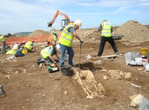 Excavation at the post-Roman cemetery at Worth Matravers cemetery. (Lilian Ladle/Antiquity Publications Ltd)