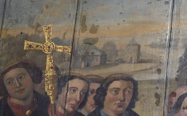 Top image: 16th century painting of Wilfred receiving a charter from King Cædwalla. Source: Chichester Cathedral/UCL