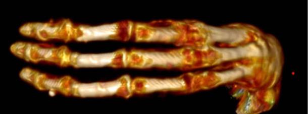 Image of three-fingered hand from mummy named Maria. (Hernandez Huaripaucar, et.al./Revista de Gestao Social e Ambiental).