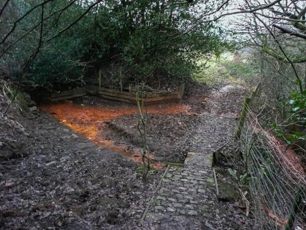 A red ochre spring near Elland in West Yorkshire in the UK. (Humphrey Bolton/Geograph Britain and Ireland/CC BY-SA 2.0).