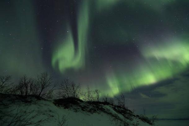 Spectacular Aurora borealis as seen from Abisko National Park in Sweden,of the type that would have been seen frequently over the Northern Hemisphere 41,000 years ago. (pavel.shyshkouski/CC BY-SA 4.0).