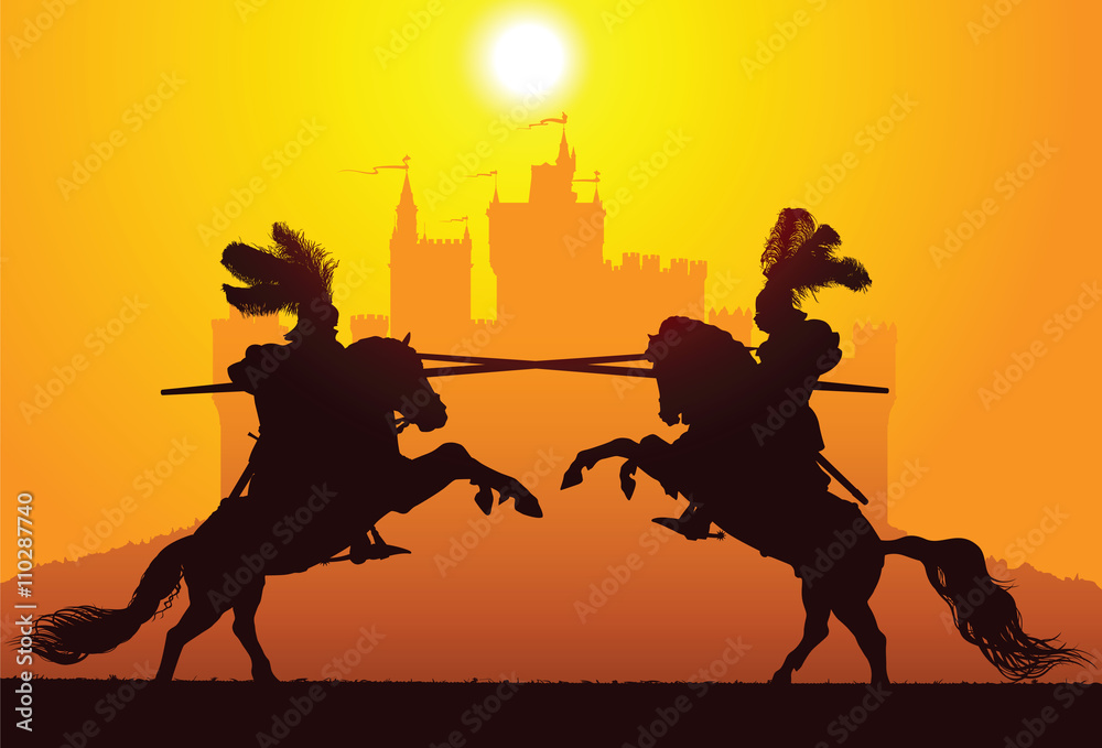 Top Image: Two medieval knights battling over a castle ( Smulsky/ Adobe Stock)