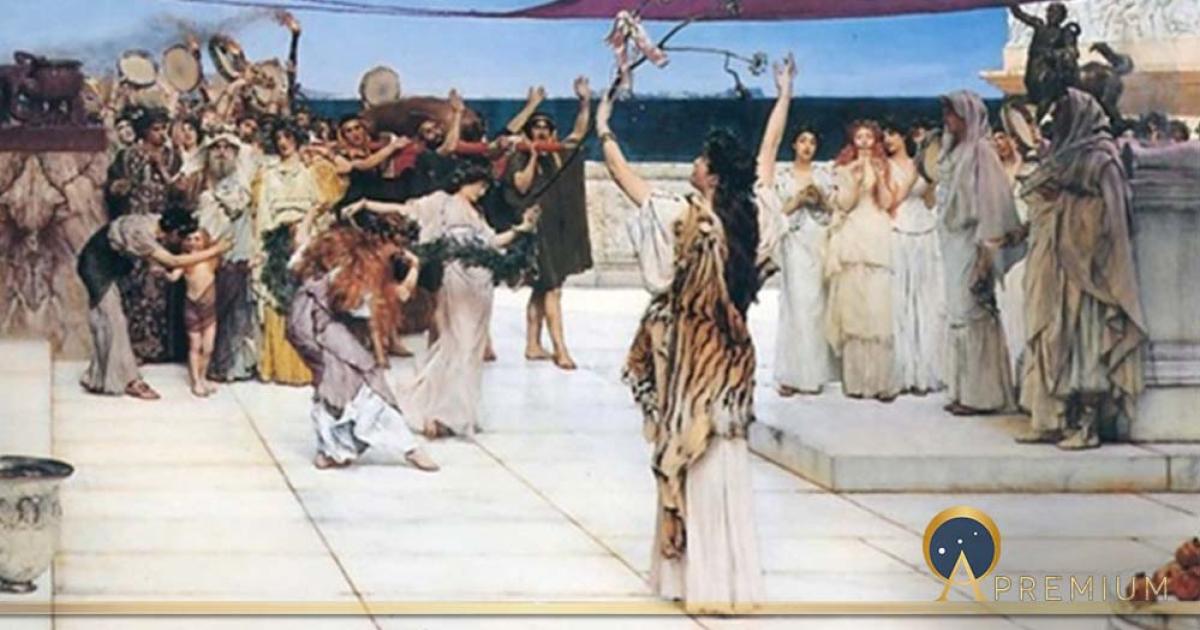 Top Image: A dedication to Bacchus by Lawrence Alma-Tadema (1889)(Notice the pomegranates on the table on the right) (Public Domain)