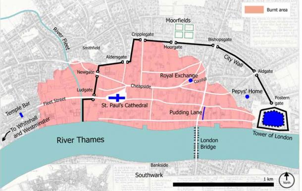 The Great Fire of London destroyed much of the old city (Bunchofgrapes / CC BY-SA 3.0)