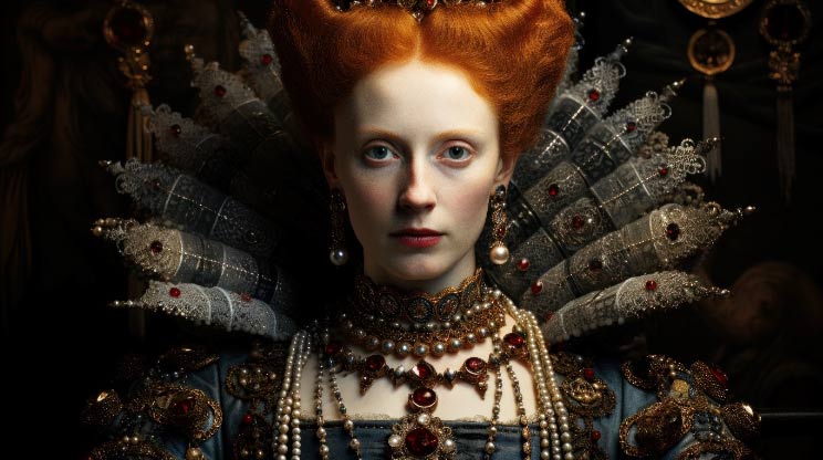 Top image: Portrait of the royal Queen Elizabeth I. AI generated image. Source: AS Photo Family/Adobe Stock