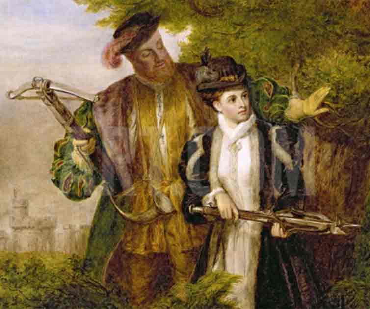 Top image: King Henry and Anne Boleyn Deer shooting in Windsor Forest by William Powell Frith, 1903. Source: Public Domain