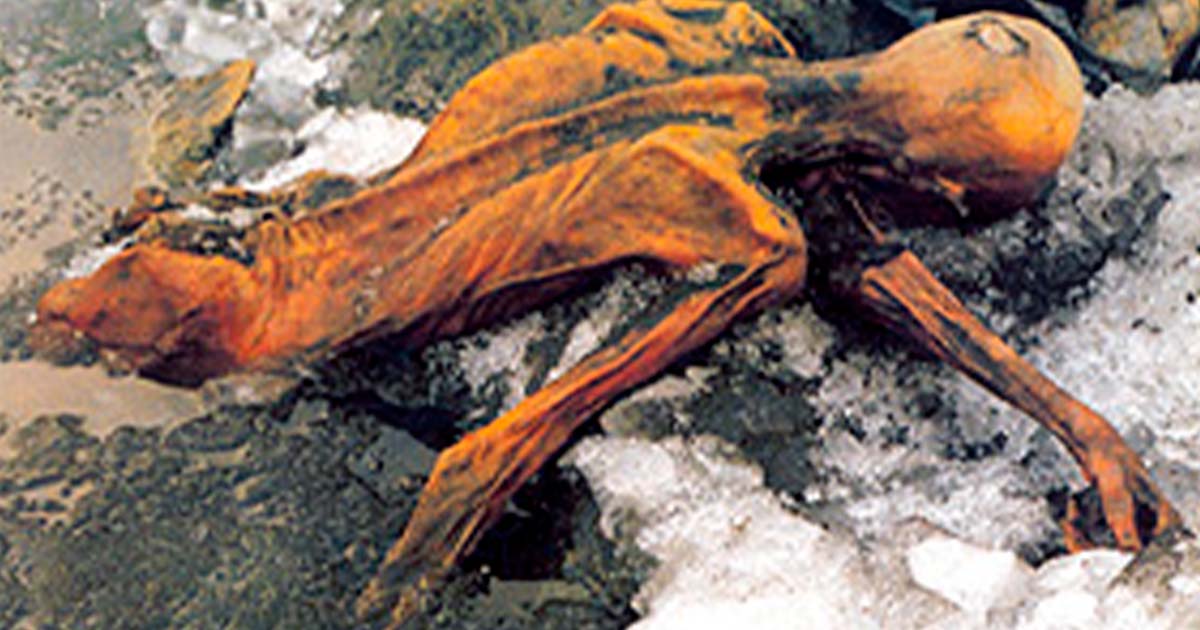Top image: Otzi the Iceman as he was found. (Public Domain)