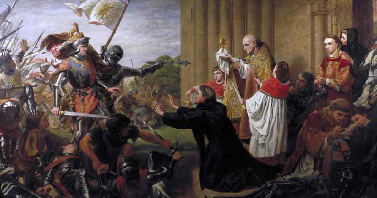 Top image: Edward IV of England & Lancastrian Fugitives at Tewkesbury Abbey. Source: Public Domain